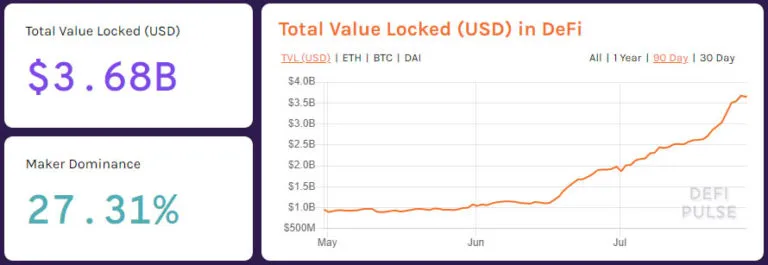 Od początku czerwca na rynkach DeFi nastąpił gwałtowny wzrost o 240% – tylko w lipcu odnotowano ponad 100% wzrost. Rolnictwo przynoszące plony i możliwość wymiany tokenów to doniczki z miodem, które wciąż przyciągają większych inwestorów.
