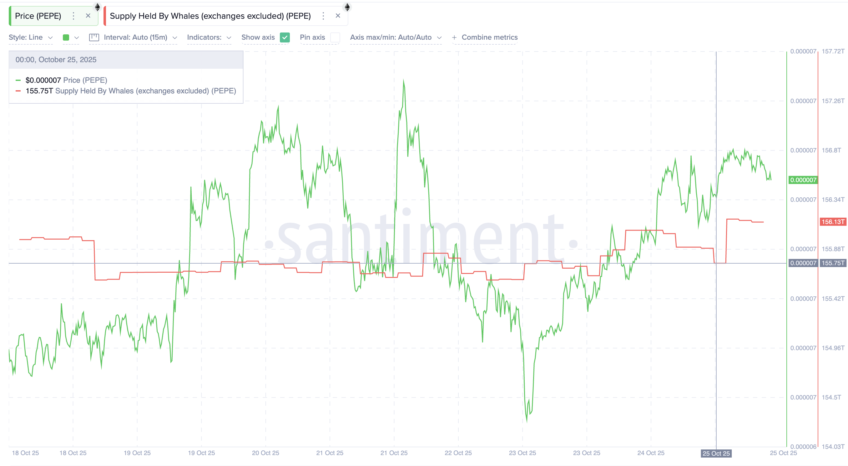 Gdy rynki skłaniają się ku łagodniejszemu stanowisku Fed, wieloryby wydają się rotować kapitał w wybrane kryptowaluty. Te wybrane mogą zyskać na łatwiejszej płynności — a Pepe (PEPE) jest jednym z nich. Token wzrósł o ponad 6% w ujęciu tygodniowym.