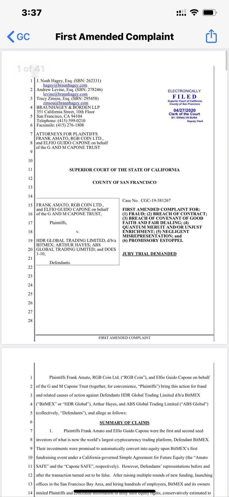 Pod koniec kwietnia tego roku pozew przeciwko giełdzie BitMEX został złożony w Sądzie Najwyższym w San Francisco. Pozwy zostały złożone na giełdę wiele razy i dodatkowo zażądano procesu z przysięgłym.