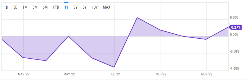 Raport U.S. Nonfarm Payrolls wykazał, że w grudniu 2022 roku powstało 223.000 miejsc pracy. Więcej niż przewidywały szacunki 203.000 i spadek z 263.000 w listopadzie 2022 roku. Bezrobocie w grudniu 2022 roku spadło do 3,5% ze zrewidowanego poziomu 3,6% w listopadzie 2022 roku. Bijąc tym samym powszechnie przyjęte szacunki na poziomie 3,7%. Niższa stopa bezrobocia oznacza, że popyt i podaż na pracę się wyrównują.