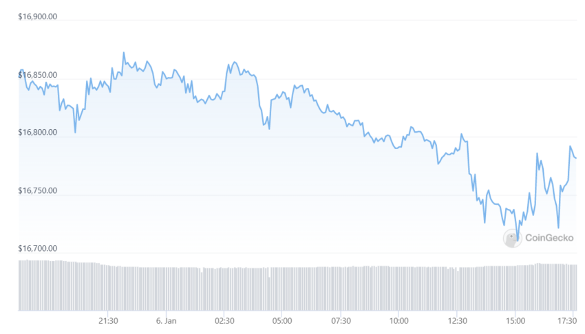 Bitcoin wzrósł do poziomu 16 791 USD, po tym jak przez większą część ubiegłego miesiąca był notowany w przedziale 16 500-17 500 USD. ADA wzrosła o 1,91% do 0,2716 USD, podczas gdy Ethereum było mniej więcej płaskie na poziomie 1 251 USD.