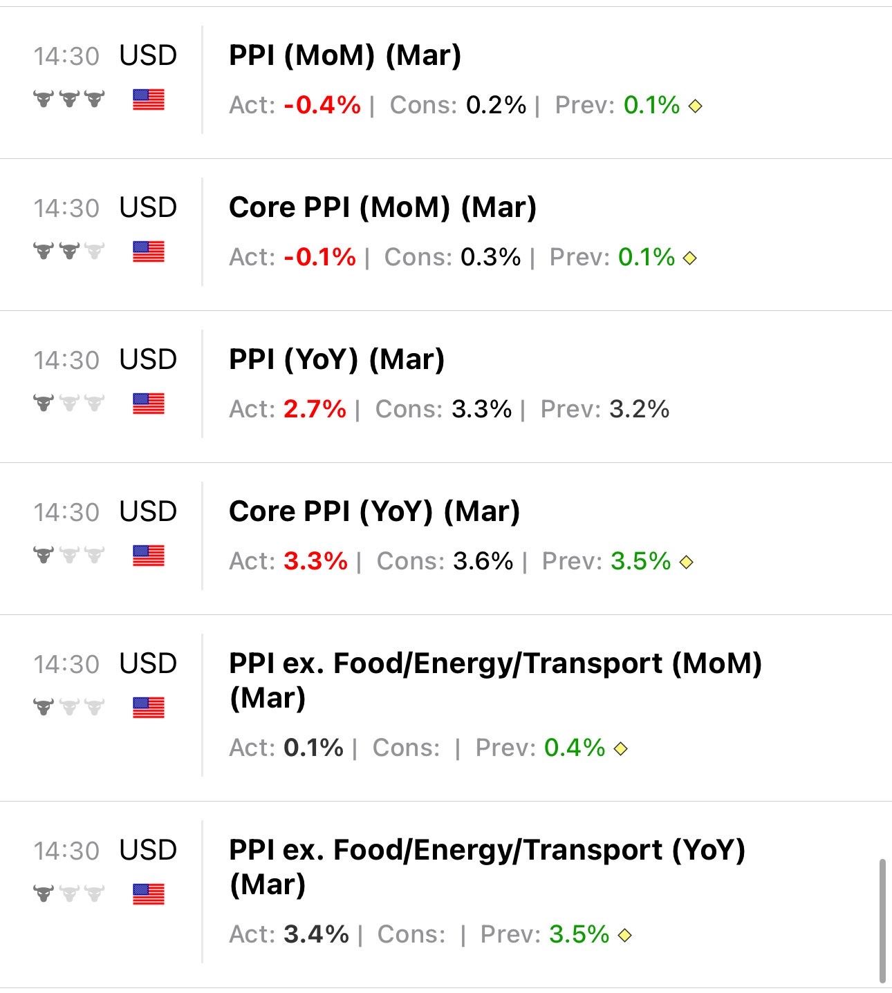 „Rynek właśnie dostał dawkę rzeczywistości. PPI spadające w dół w stosunku do oczekiwań sygnalizuje presję deflacyjną. Co dalej z Fed? Wszystko zależy od prawidłowej interpretacji tych danych.”