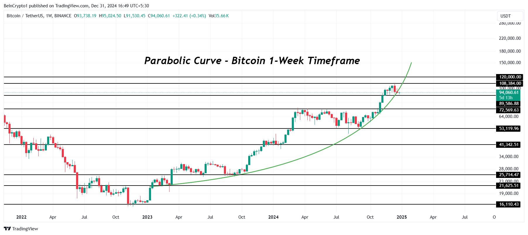 Bitcoin obecnie wyceniany jest na poziomie 94 060 USD, a z jego optymistyczną prognozą celuje on w 120 000 USD. W dłuższej perspektywie czasowej BTC wydaje się tworzyć paraboliczną krzywą, co sugeruje utrzymujący się optymizm. Ta formacja techniczna jest zgodna z szerszymi oczekiwaniami na znaczny wzrost w miarę zbliżania się 2025 roku.