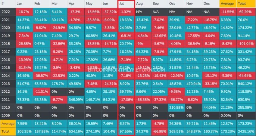 Typowy lipiec dla Bitcoina