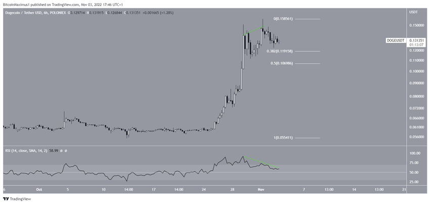 Następnie kurs Dogecoin utworzył długi dolny knot i możliwy wzór podwójnego dna. Wzór łączy się z byczą dywergencją na tygodniowym RSI (zielona linia).