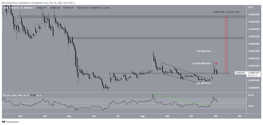 Cena Shiba Inu wybiła się z klina zniżkującego w dniu 25 października i osiągnęła szczyt na poziomie 0,000015 USD cztery dni później. Wybicie z klina było połączone z wybiciem RSI i ruchem powyżej 50, co zwiększyło jego ważność.