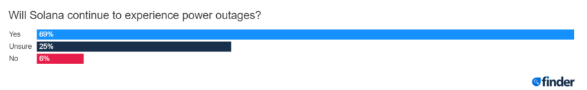 Solana od września 2021 roku boryka się z powtarzającymi się awariami. 69% uczestników panelu uważa, że ten problem będzie uporczywy.