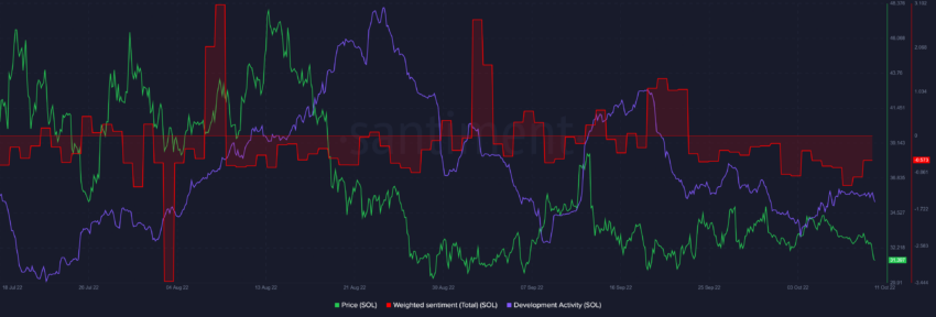 Ponadto, wzmianki w mediach społecznościowych na temat SOL spadły. Ważony sentyment pogrążył się w negatywnym terytorium.