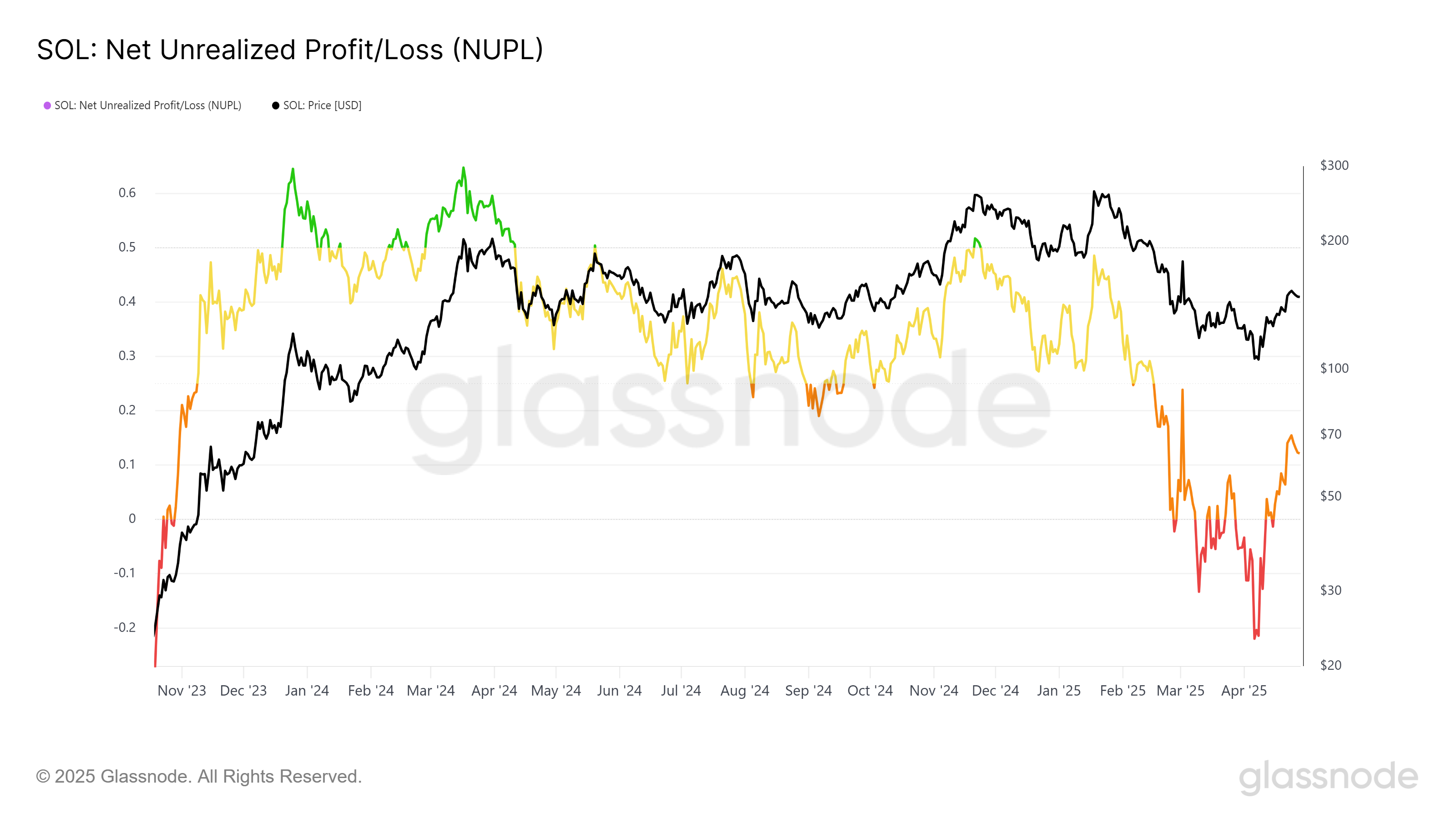 Obecnie Solana znajduje się w strefie „nadziei”. Dzieje się tak według wskaźnika niezrealizowanego zysku/straty (NUPL). Historycznie, gdy Solana wchodziła w tę strefę, często poprzedzało to wzrosty cen, a cena rosła, gdy wskaźnik zbliżał się do strefy „optymizmu” na poziomie 0,25. Chociaż Solana jest jeszcze daleko od tego progu, jej cena może wzrosnąć w oczekiwaniu na dalszy byczy impet.