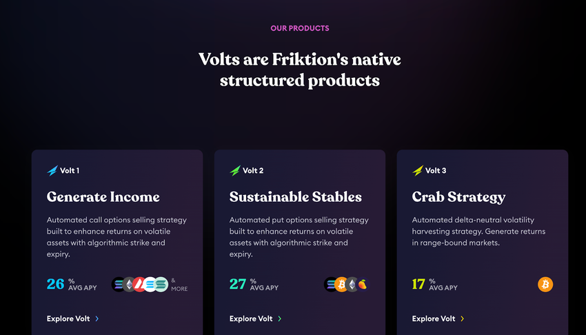 Friktion był przede wszystkim platformą do zarządzania portfelem, która następnie przeszła do usług pożyczkowych. Oferował użytkownikom różne strategie generowania zysków, znane jako Volt.