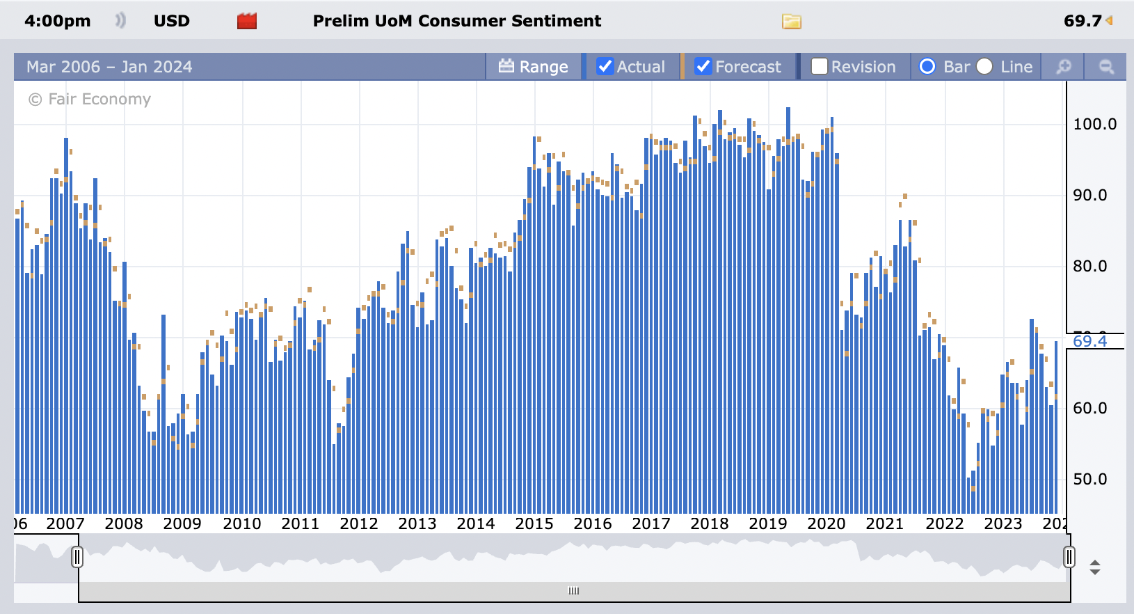 Jednymi z najważniejszych danych, które zostaną opublikowane w nadchodzącym tygodniu, są piątkowe dane o zaufaniu konsumentów w USA.