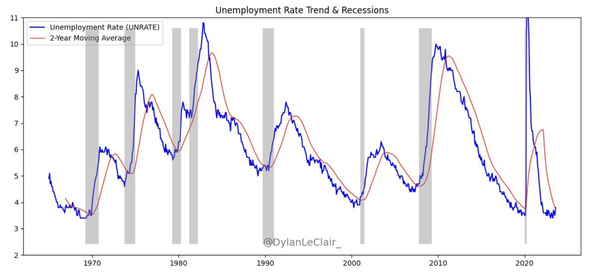 Jak dotąd recesja, którą wszyscy przewidywali, nie zmaterializowała się z powodu trzech czynników: opóźnionego wpływu podwyżek stóp procentowych banku centralnego USA, przepełnionej puli oszczędności amerykańskich konsumentów po pandemii COVID-19 oraz strachu firm przed zwalnianiem pracowników (ponieważ firmy obawiają się, że nie będzie można ich odzyskać).