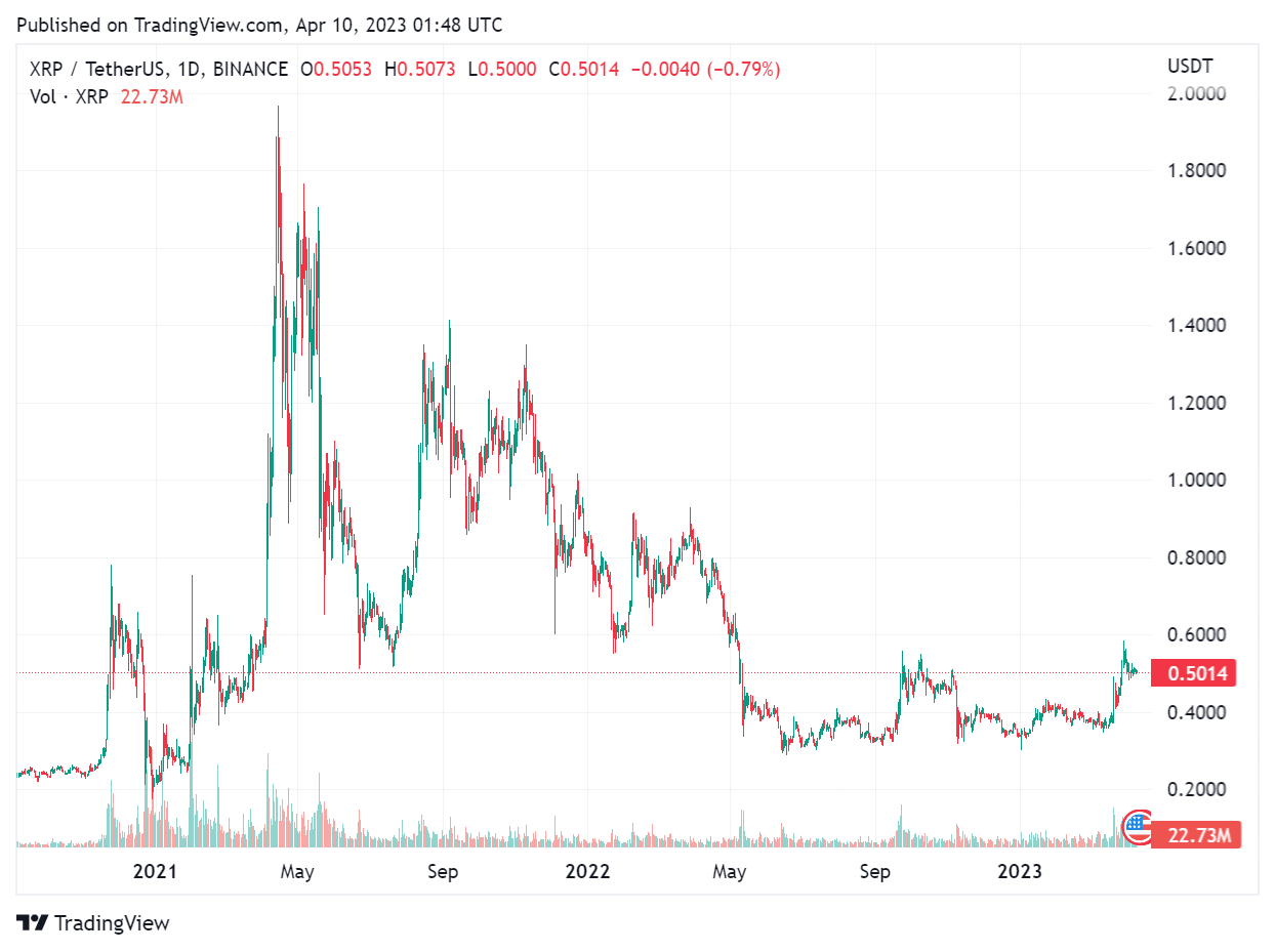 Jeśli kupiłeś XRP za 100 USD 10 lat temu po cenie Ripple wynoszącej 0,0054 dolara za sztukę, miałbyś wtedy około 18 518 XRP. W chwili pisania tego tekstu XRP jest notowany po 0,5 USD, co oznacza, że jego wartość wzrosła do 9259 dolarów.