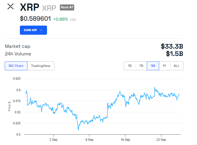 Zgodnie z danymi od BeInCrypto, XRP jest obecnie notowane po 0,59 USD, co oznacza skromny wzrost o 0,66% od otwarcia rynku w piątek.