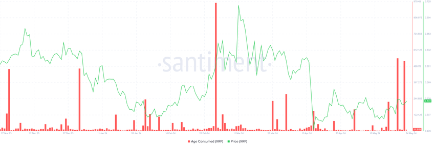 W przypadku natywnego tokena Ripple, ci długoterminowi inwestorzy mają wzorzec comiesięcznego przenoszenia swoich aktywów, który został już wyceniony w tym momencie. Jednak ostatnio metryka zużycia wieku, która mnoży całkowity wolumen przeniesiony przez czas od ostatniego przeniesienia, wykazała skoki w ciągu ostatnich kilku dni.