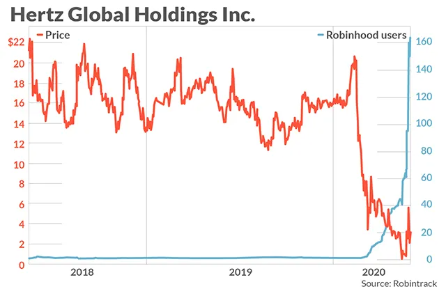 Ostatnio, po doniesieniach o bankructwie, Hertz ($HTZ) zatonął do ceny akcji 0,40 USD. Towarzyszył temu exodus jego głównych inwestorów, w tym Carla Icahna, który sprzedał całą swoją 39% pozycję ze stratą prawie 1,8B USD.