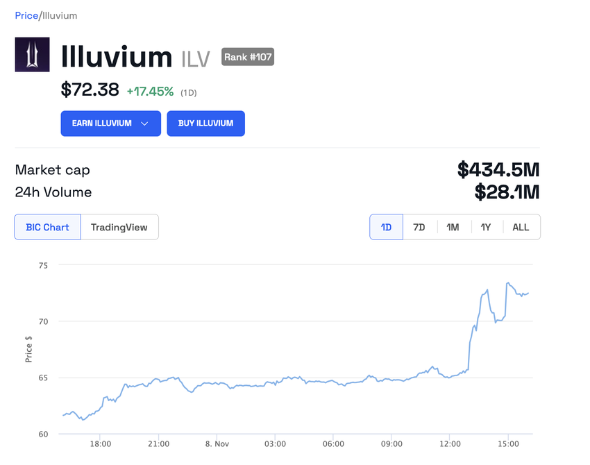 Po ogłoszeniu Illuvium, jego natywny token, ILV, wzrósł o ponad 17% w ciągu ostatnich 24 godzin.