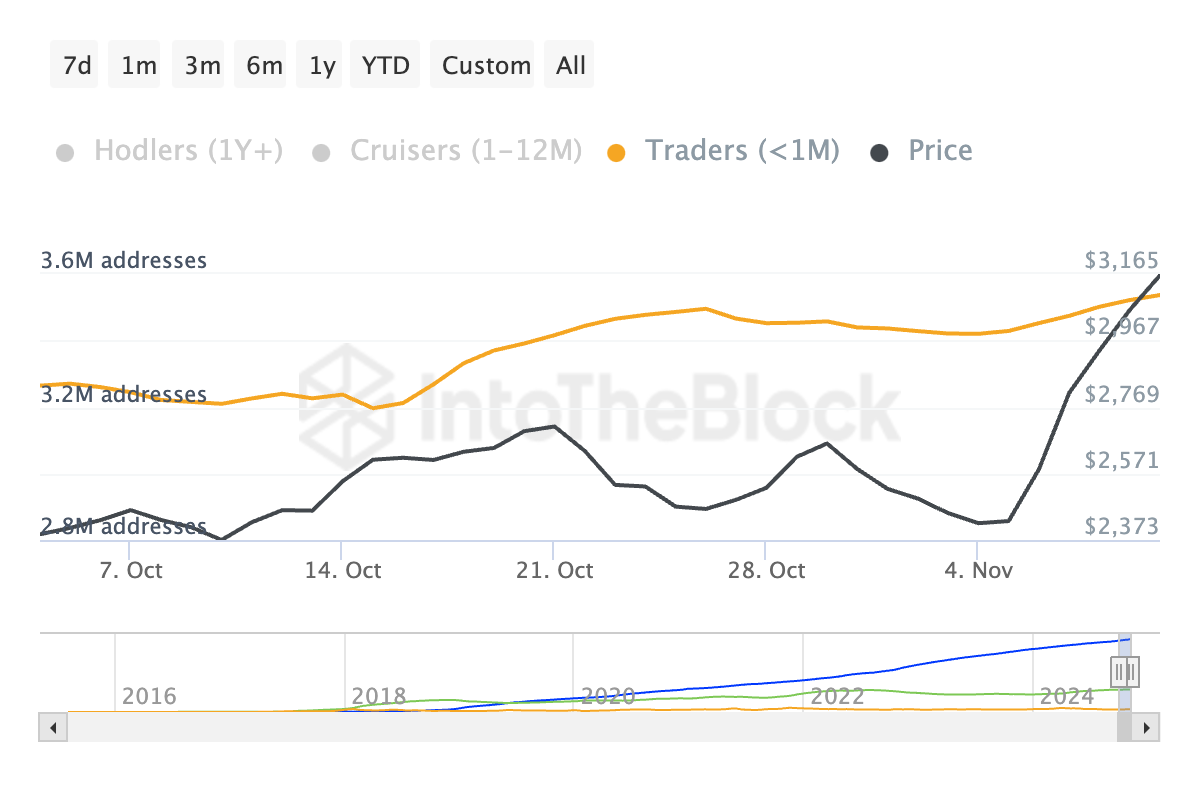 Oprócz długoterminowych inwestorów, krótkoterminowi posiadacze Ethereum (STH) również wykazali znaczącą zmianę zachowania. Aktualnie decydują się oni zatrzymać swoje aktywa zamiast sprzedawać. W ciągu ostatniego miesiąca STH — ci, którzy posiadali swoje monety przez mniej niż 30 dni — zwiększyli swój czas trzymania o 9%. Zdecydowanie jest to sygnałem rosnącego zaufania do aktywa.