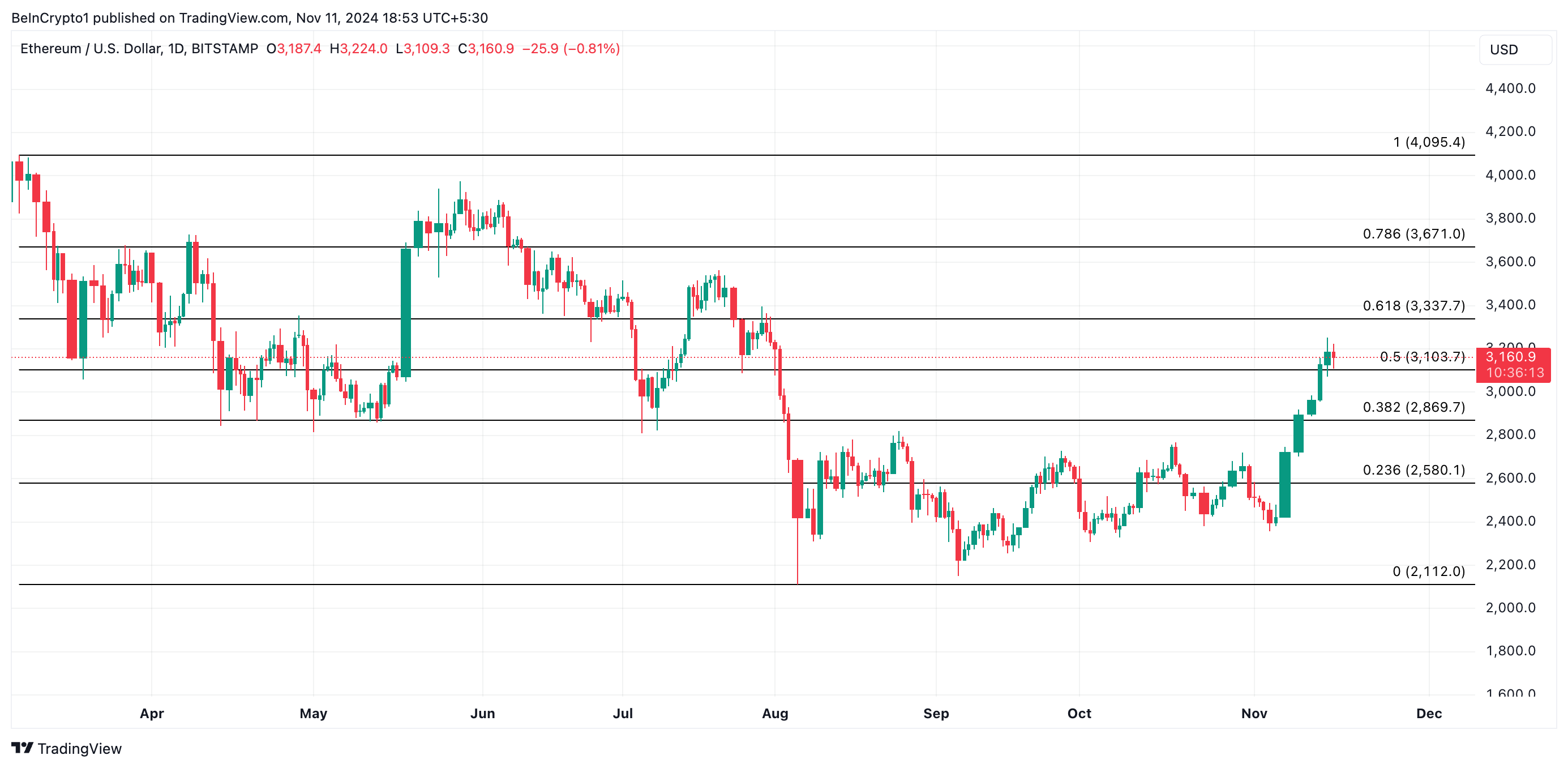 Jeśli wzrost się utrzyma, cena Ethereum prawdopodobnie ustabilizuje się na poziomie 3103 USD. Ten obszar wsparcia otworzyłby drogę do wzrostu w kierunku 3337 USD. Pomyślne pokonanie tego poziomu usunęłoby kolejną barierę na 3671 USD, otwierając ścieżkę na roczny szczyt Ethereum powyżej bieżącego 4095 USD.
