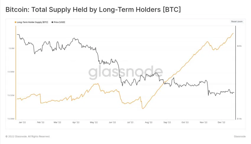 Z kolei inwestorzy detaliczni pozostają ufni wobec Bitcoina. Według głównego analityka Glassnode, całkowita podaż BTC od długoterminowych posiadaczy jest na najwyższym poziomie.