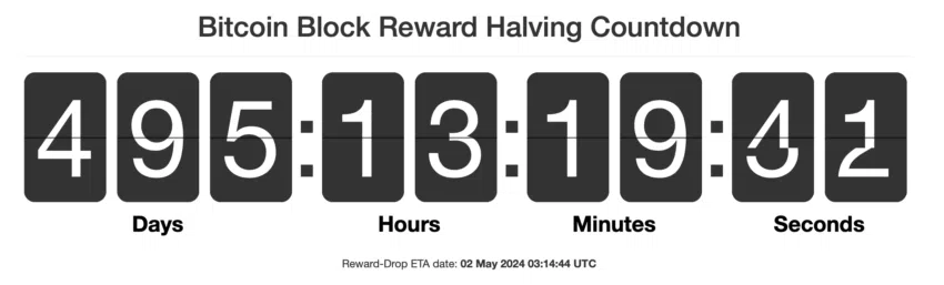 Analitycy zauważyli, że w poprzednich cyklach Bitcoin osiągał dno na 517-547 dni przed halvingiem. Według licznika dzieli nas od niego tylko 495 dni.