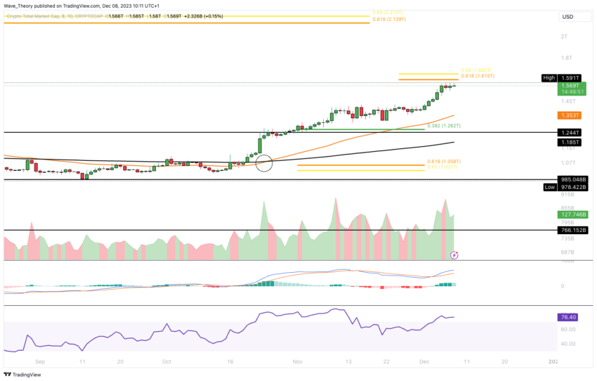 Rynek kryptowalut jest o krok od osiągnięcia oporu Golden Ratio na poziomie ok. 1,615 bln USD.