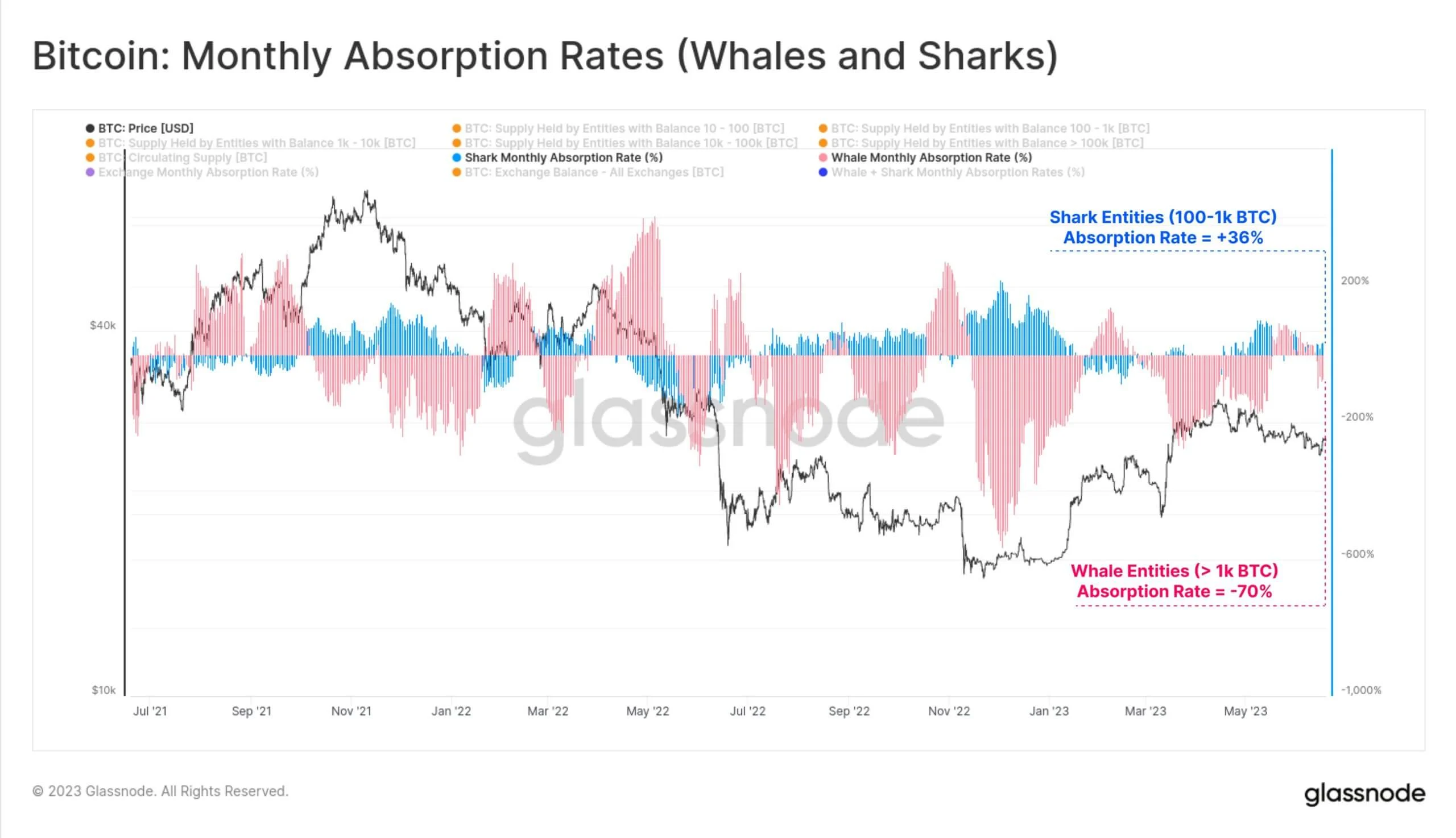 Z drugiej strony, tak zwane wieloryby, które mają do dyspozycji co najmniej 1000 BTC, działają inaczej. W przeważającej mierze pozbywają się monet, sprzedając równowartość 70 procent wydobytych monet w ciągu jednego dnia. Okazuje się, że aktywa dużych inwestorów zasadniczo przepływają do mniejszych posiadaczy kapitału.