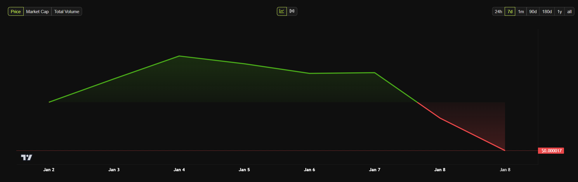 Ten ruch mógł dodatkowo wzmocnić niedźwiedzi sentyment. Pepe również odnotował straty przekraczające 10% na wykresie 24-godzinnym.