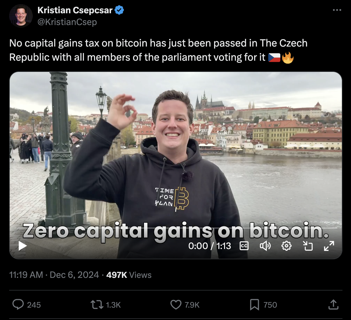 Republika Czeska ogłosiła zwolnienie z podatku od zysków kapitałowych dla Bitcoina i innych kryptowalut przechowywanych przez ponad trzy lata. Oznacza to, że rząd czeski wspiera kryptowaluty, a nowa regulacja to odpowiedź na globalne trendy oraz próba uczynienia z kraju lidera cyfrowej gospodarki.