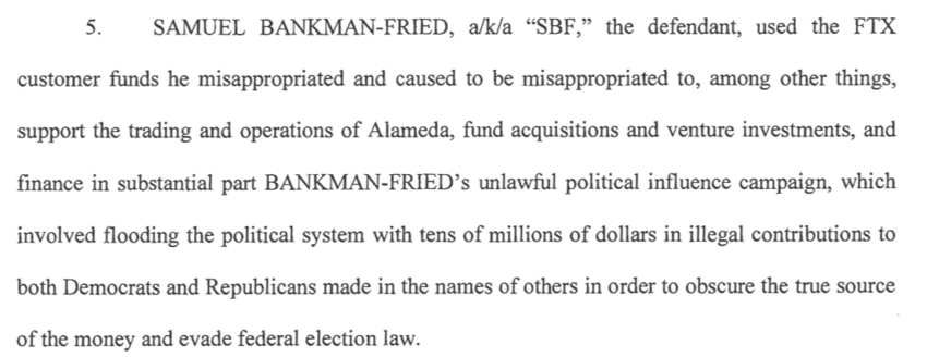 SBF stoi teraz przed czterema zarzutami dotyczącymi oszustwa i czterema zarzutami dotyczącymi spisku w związku z prowadzeniem FTX. W nowym akcie oskarżenia zarzuca się, że Bankman-Fried zmówił się z innymi pracownikami FTX, aby nielegalnie przekazać środki klientów FTX politykom podczas zeszłorocznych wyborów śródokresowych w USA.