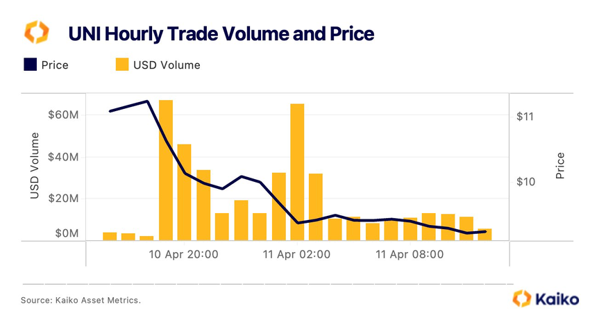 Co więcej, status natywnego tokena Uniswap, UNI, jako potencjalnego zabezpieczenia dodaje kolejną warstwę złożoności. Analitycy z Kaiko zauważyli, że cena UNI spadła o 15%, a wolumeny obrotu wzrosły po ogłoszeniu. W międzyczasie Santiment zgłosił “znaczną ilość FUD” od traderów Uniswap.