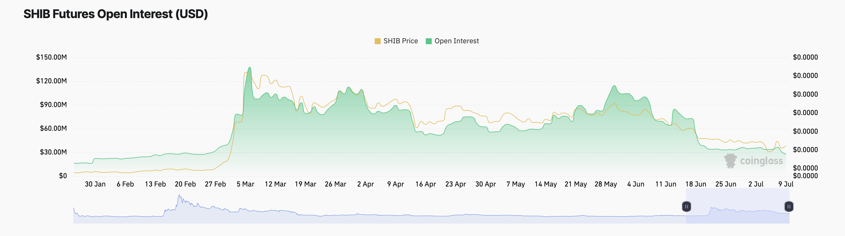 Obecnie otwarte pozycje dla Shiba Inu opiewają na kwotę 27,61 miliona USD i spadły o 23% w tym miesiącu. Jest to najniższy poziom od lutego.