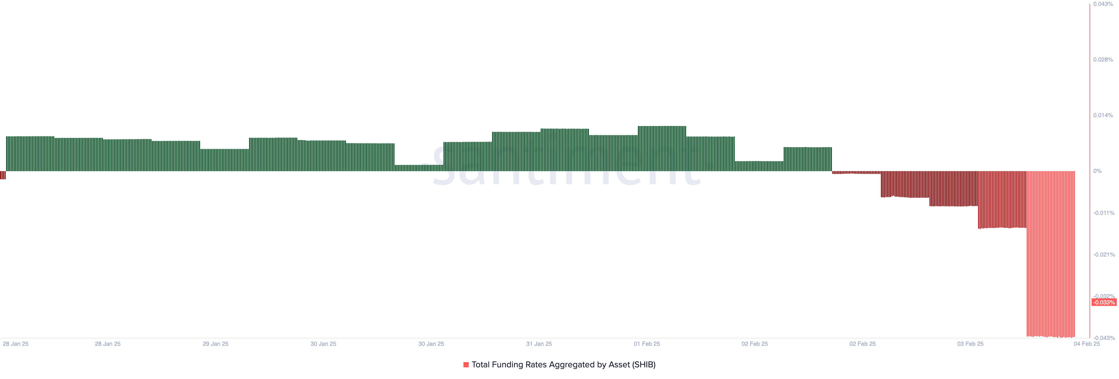 Historycznie ujemne wskaźniki MVRV stanowią okazję do zakupu dla tych, którzy chcą „kupić dołek” i „sprzedać wysoko”. Jednak silne niedźwiedzie nastroje nękające SHIB sugerują, że prawdopodobieństwo odbicia ceny w najbliższym czasie może być niskie.