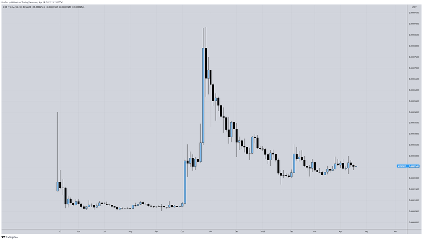 Jednakże ruch, który pokonałby całą wysokość formacji, mógłby potencjalnie sprowadzić Shiba Inu z powrotem do poziomu 0,0000060 USD. Spadek do tego poziomu całkowicie zanegowałby cały ruch wzrostowy, który rozpoczął się w październiku 2021 roku.