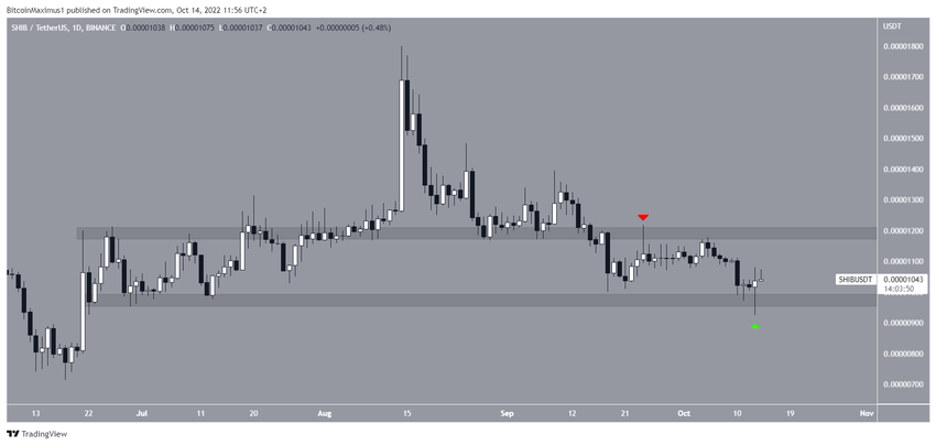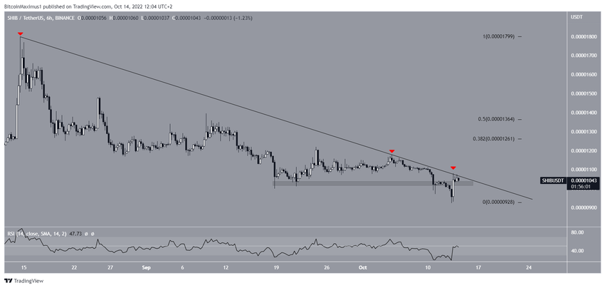 SHIB spada od osiągnięcia ATH 0,00001800 USD 14 sierpnia. Dotychczasowy ruch w dół doprowadził do dołka 0,00000924 USD 14 października.