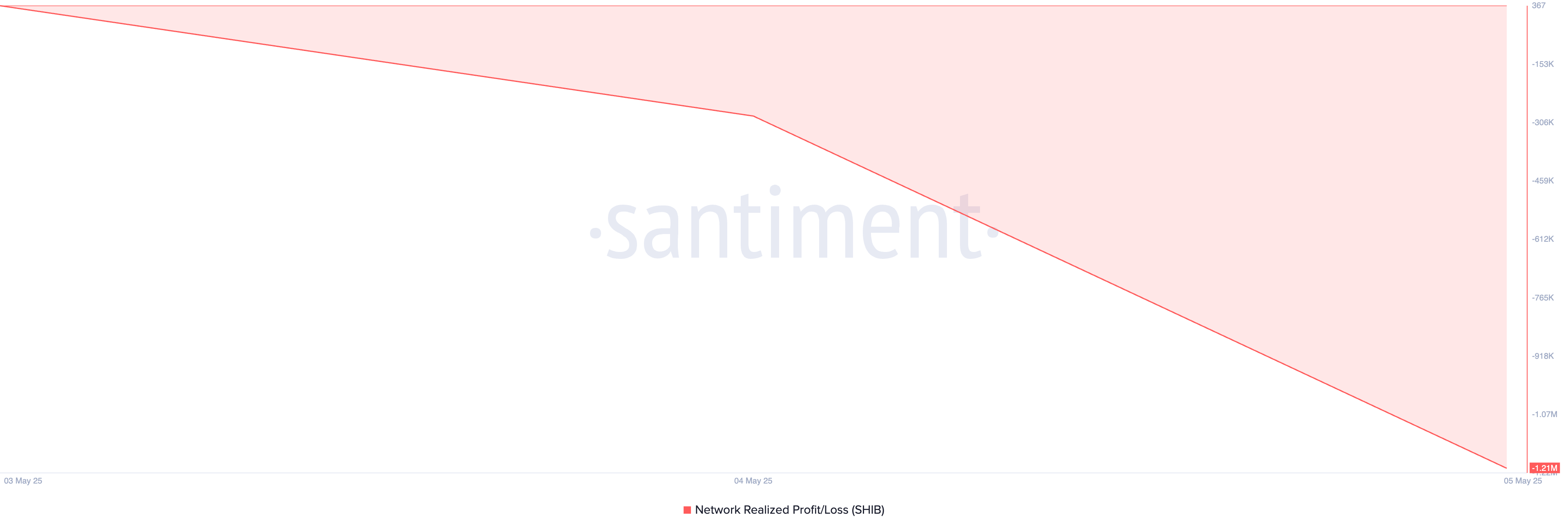 Dane on-chain wspierają tę byczą perspektywę. Według Santiment wskaźnik zrealizowanego zysku/straty sieci SHIB (NPL) pozostaje ujemny, co wskazuje, że większość posiadaczy jest pod wodą.