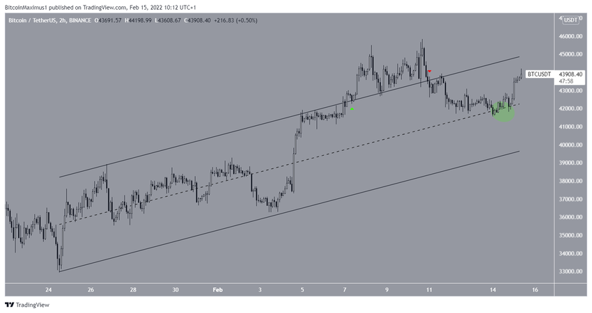 W dniu 7 lutego Bitcoin wybił się z równoległego kanału wzrostowego i 10 lutego osiągnął lokalny szczyt na poziomie 45 821 USD.