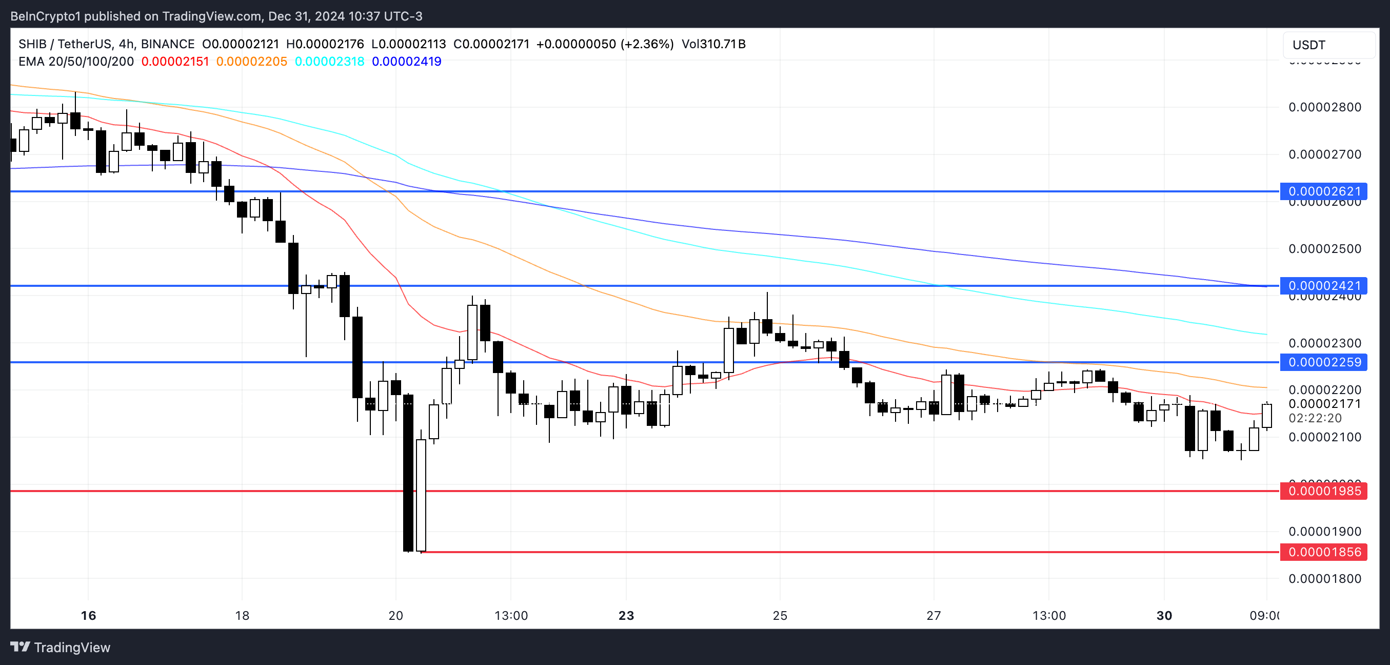 Te kluczowe poziomy oporu i wsparcia prawdopodobnie zdefiniują krótkoterminową trajektorię SHIB. Traderzy będą uważnie obserwować, czy przeważają siły byków czy niedźwiedzi.