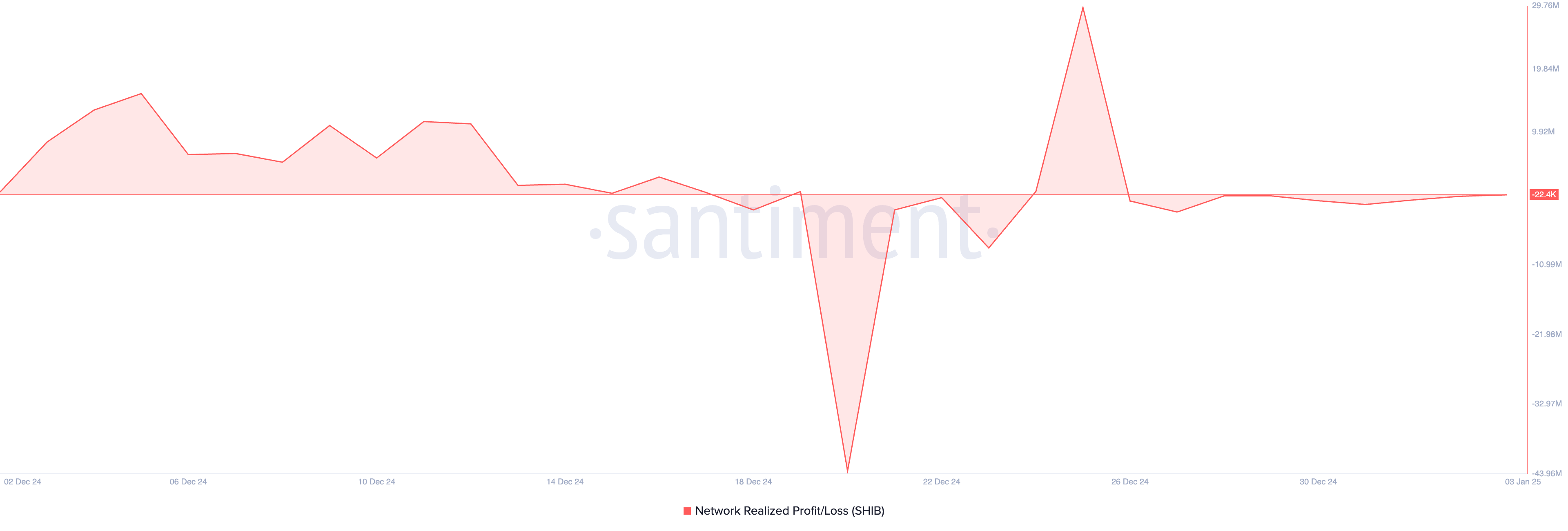 Dodatkowo, wzrost cen SHIB napędzany jest również przez ogólny spadek aktywności sprzedażowej na rynku z obawy przed poniesieniem strat. Według danych z Santiment, negatywny wskaźnik zrealizowanego zysku/straty sieci wskazuje, że wielu traderów, którzy sprzedali swoje monety w ciągu ostatniego tygodnia, doznali straty.