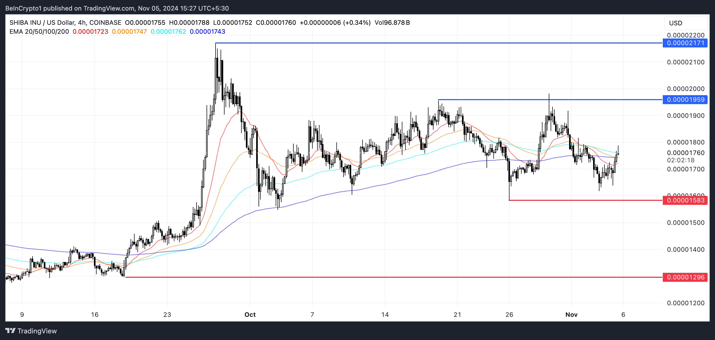 W takim przypadku SHIB może najpierw przetestować wsparcie na poziomie 0,00001583 USD. Jeśli ten poziom się nie utrzyma, cena może spaść dalej do około 0,00001296 USD.