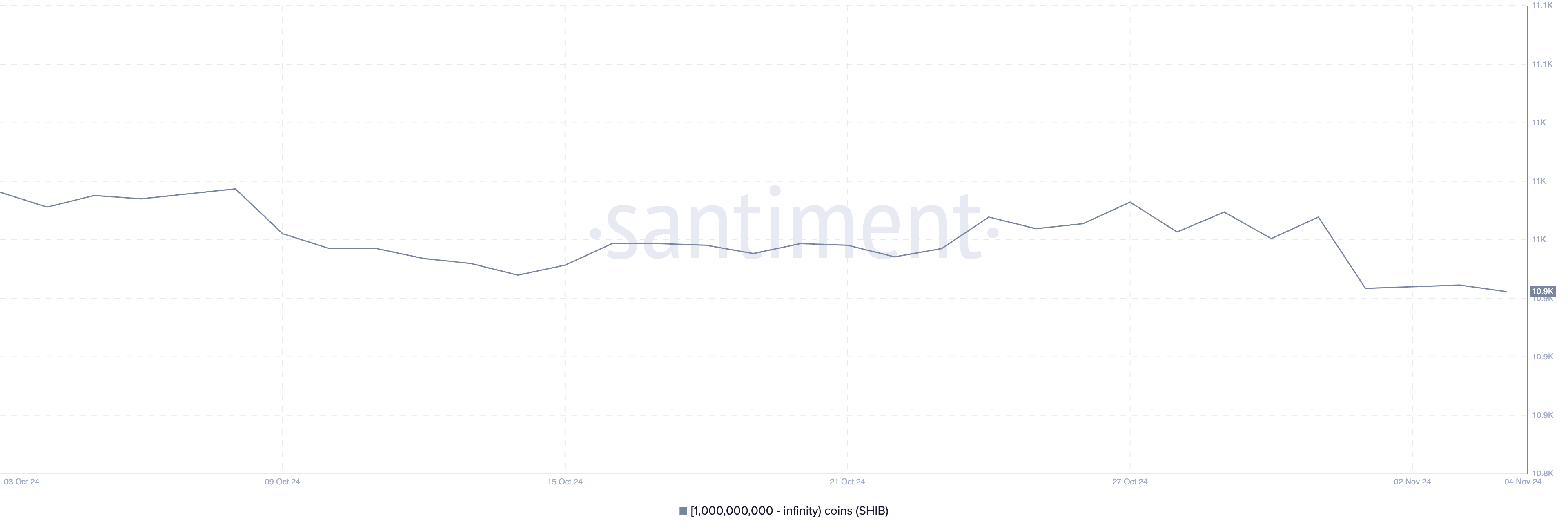 Między 31 października a 1 listopada liczba posiadaczy SHIB z co najmniej 1 mld tokenów spadła z 11 024 do 10 981. Śledzenie tych dużych portfeli, czyli “wielorybów”, jest kluczowe, ponieważ posiadają one znaczące części podaży i mają potencjał wpływania na ruchy cenowe.