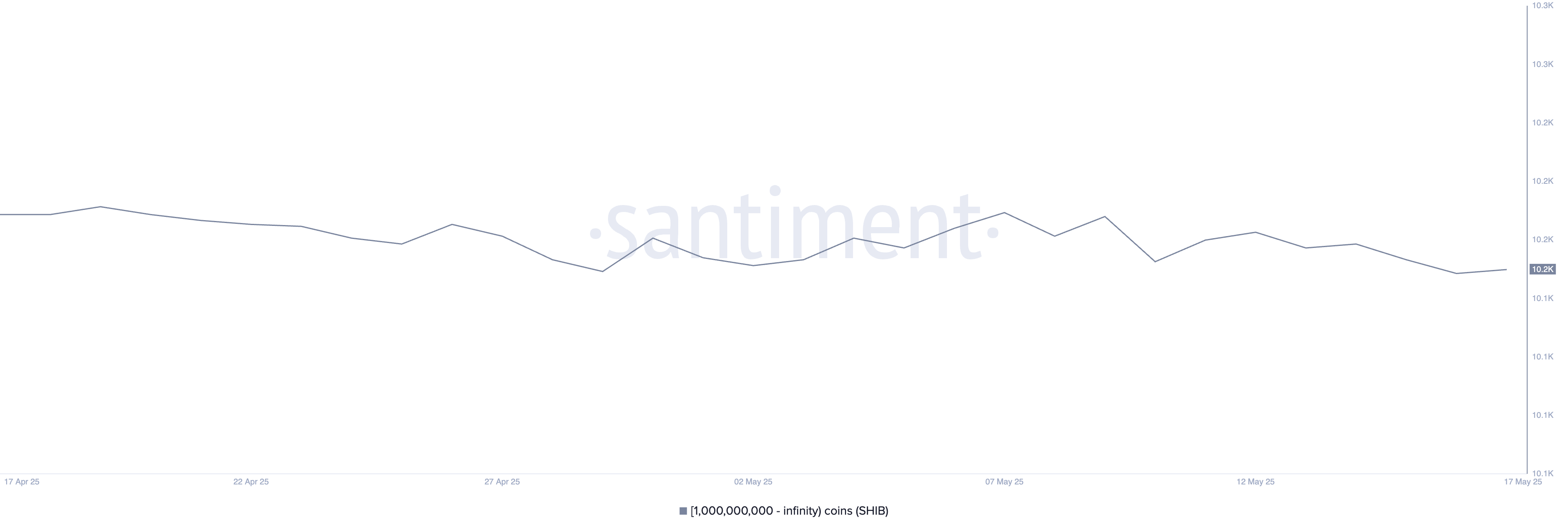 Liczba wielorybów Shiba Inu—tych, którzy posiadają co najmniej 1 miliard SHIB—nieznacznie spadła do 10 205, z 10 232 zarejestrowanych dziewięć dni temu.