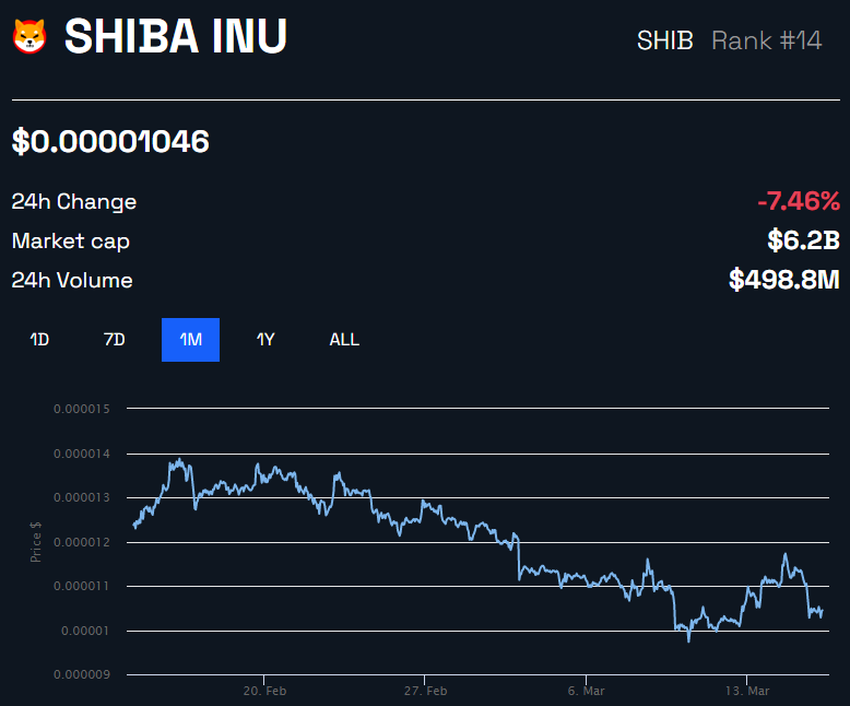 Zarzuty mogą również spowodować, że cena SHIB zatankuje jeszcze bardziej. Token przyjął 33% uderzenie w lutym, a niektórzy oczekują, że spadnie jeszcze bardziej.