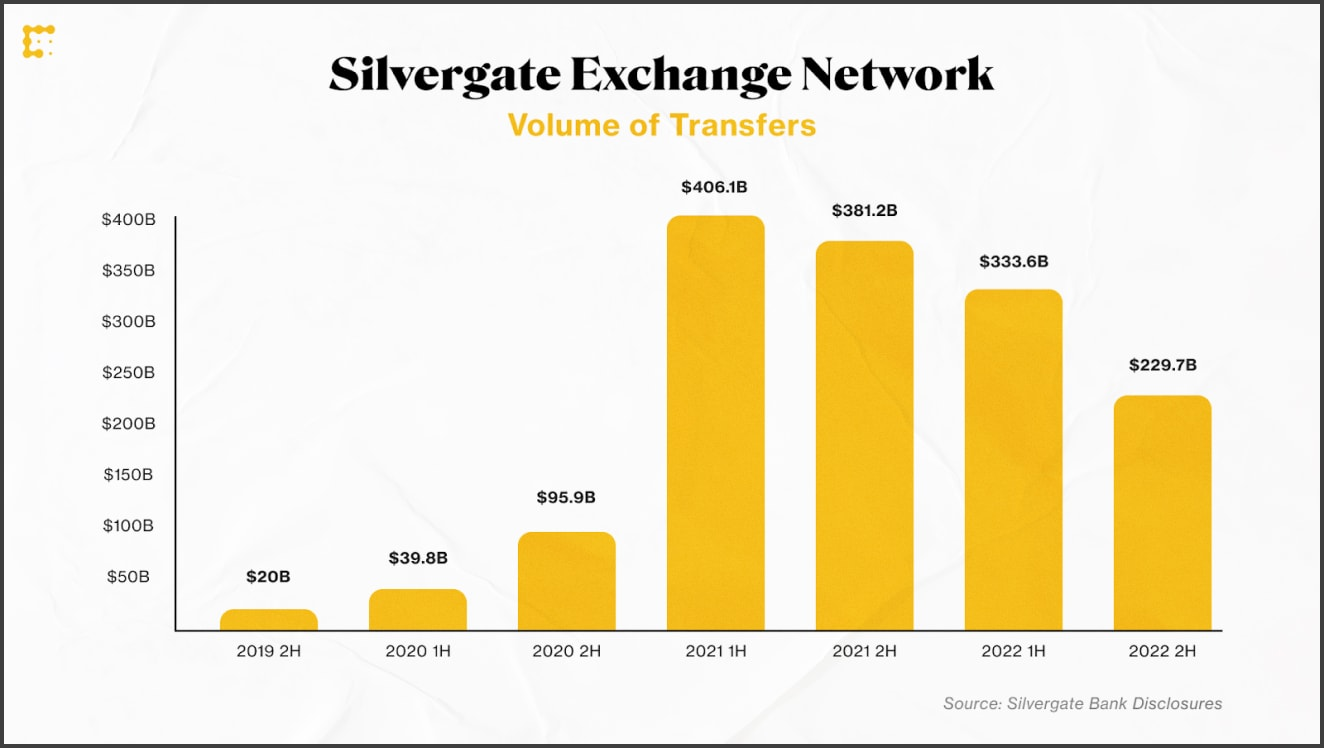 W 2021 roku Silvergate przetwarzał ~750 miliardów dolarów przelewów związanych z kryptowalutami rocznie za pośrednictwem swojego systemu płatności. I jak wspomnieliśmy powyżej, bank obsługiwał ponad 100 giełd kryptowalutowych i 1500 klientów instytucjonalnych. Zakończenie działalności Silvergate mogłoby spowodować: