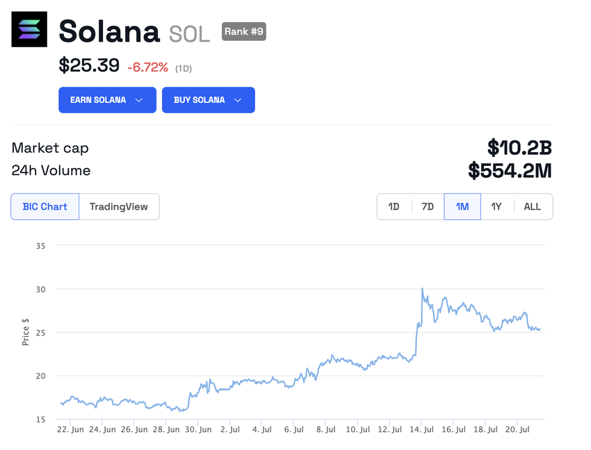 W ciągu ostatnich 24 godzin cena SOL spadła o około 6,72%. Ale w ciągu ostatnich 30 dni token wzrósł o ponad 50%.