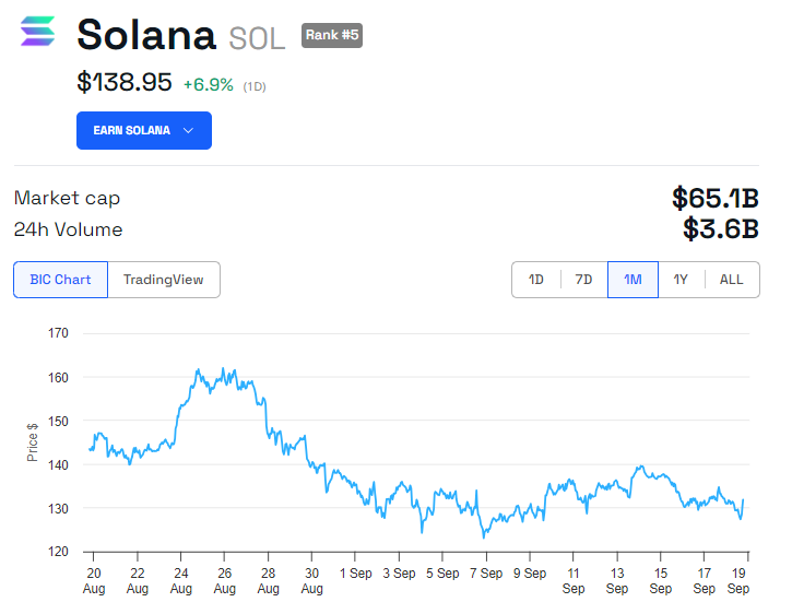 W chwili pisania tego tekstu, SOL jest notowany po 138,95 USD. Oznacza to wzrost o prawie 7% w ciągu ostatnich 24 godzin, zgodnie z ogólnym ożywieniem na rynku.