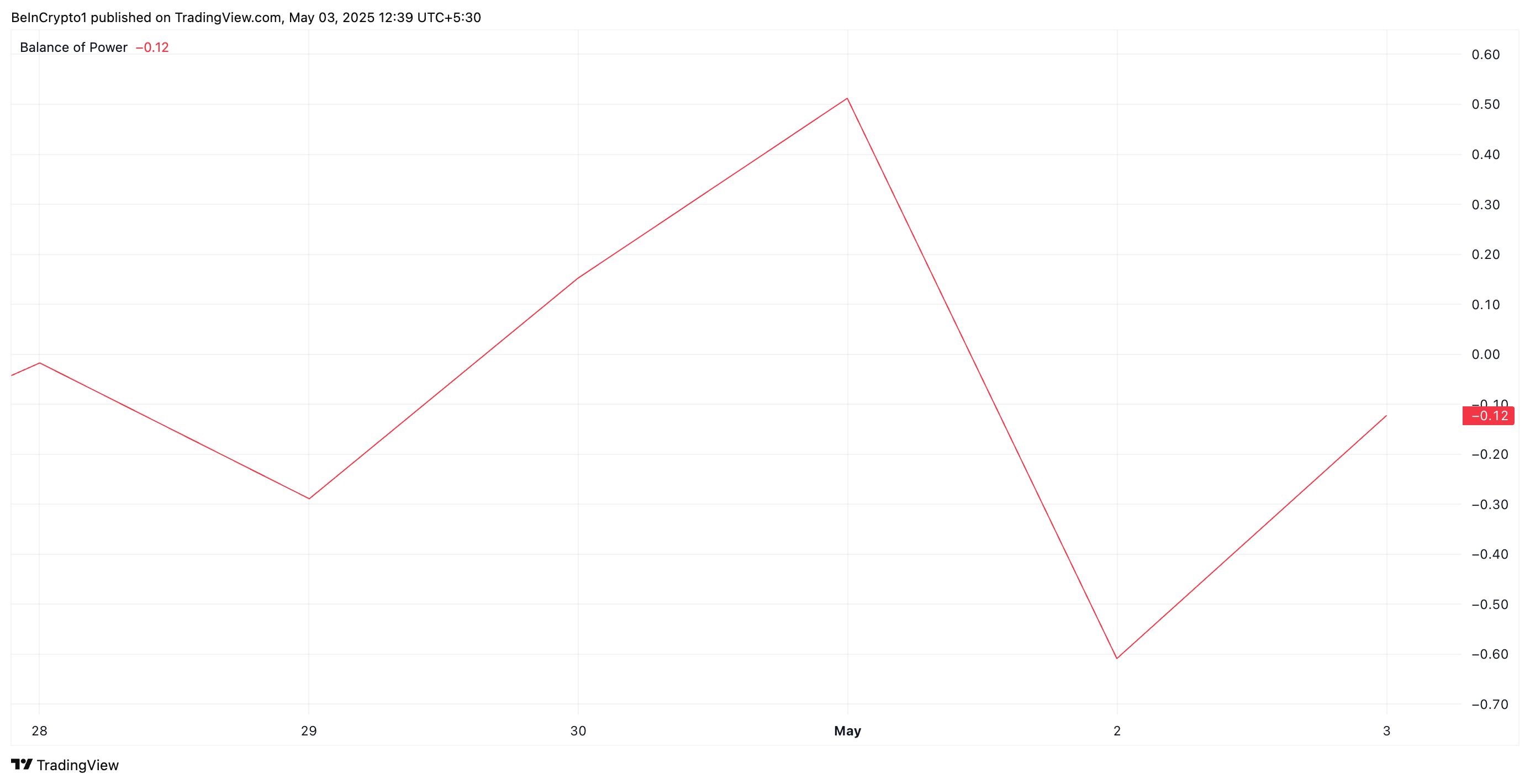 Wskaźnik BoP mierzy siłę presji kupna w porównaniu do presji sprzedaży, porównując cenę zamknięcia z zakresem handlowym w danym okresie.