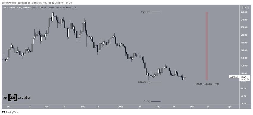 Solana (SOL) spada od czasu osiągnięcia w dniu 6 listopada rekordu wszech czasów (ATH) na poziomie 259,90 USD. Jak dotąd, ruch spadkowy doprowadził do lokalnego dołka na poziomie 81 USD w dniu 22 lutego. Mierząc od ATH, oznacza to spadek o 69%.