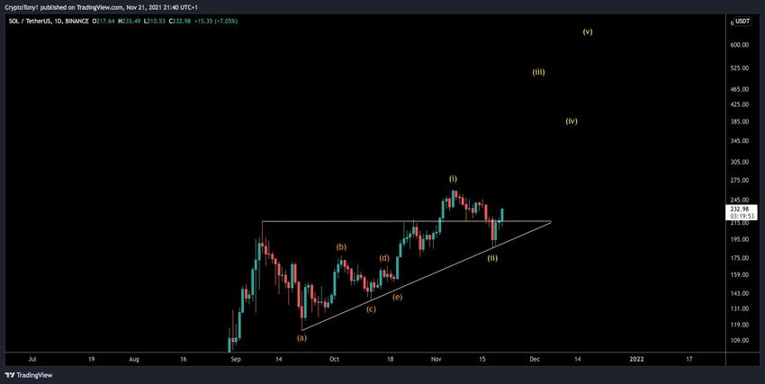 Kryptowalutowy trader @CryptoTony_ zatweetował wykres Solana, stwierdzając, że altcoin może wzrosnąć w kierunku 400 USD, a potencjalnie nawet do 600 USD.