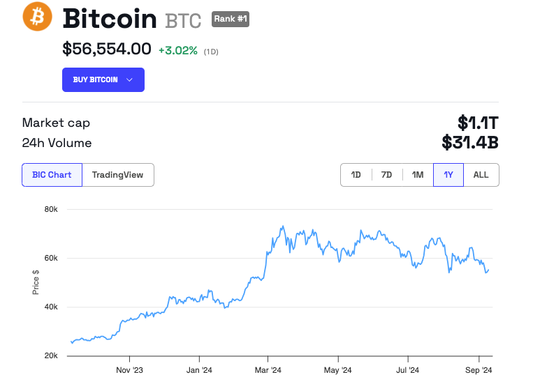 W tym roku Bitcoin wahał się między 55 000 a 70 000 USD, osiągając szczyt w marcu. W chwili pisania tego tekstu, jego cena wynosi około 56 500 USD, co oznacza wzrost o 3% w ciągu ostatnich 24 godzin.